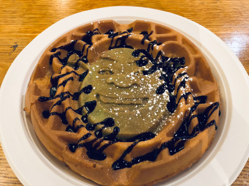 The waffle itself was surprisingly crispy and light, even with the addition of Shrek’s face, but a little bland, even with the addition of the chocolate sauce.