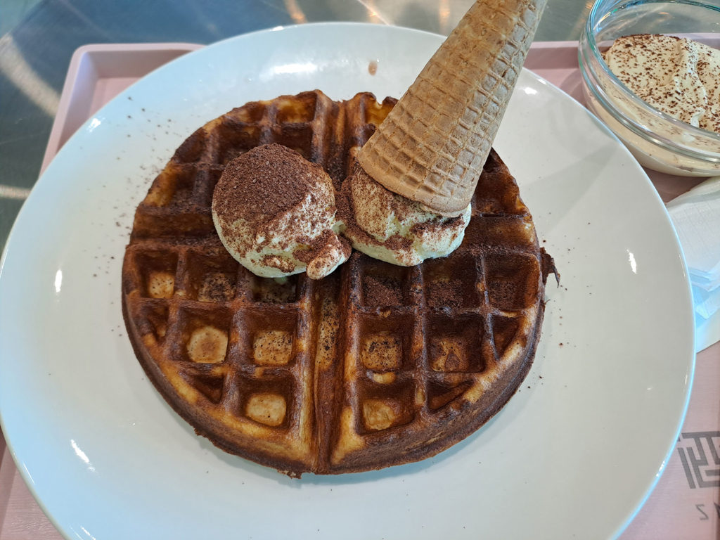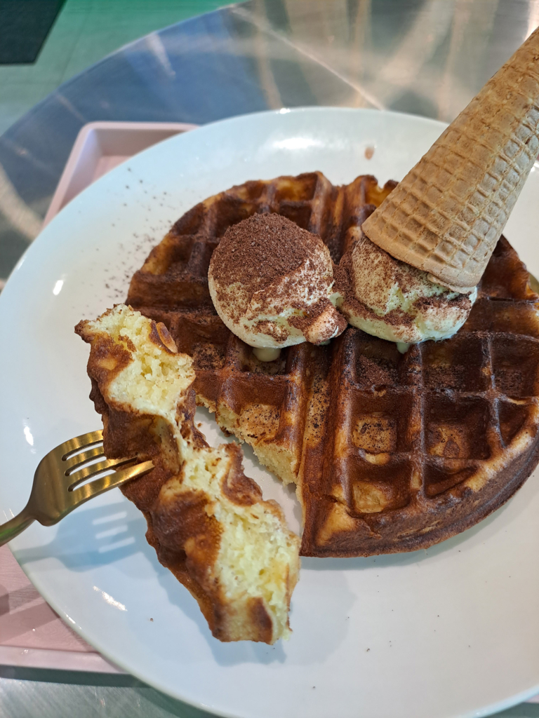The waffle had a thick and crispy exterior, but unfortunately, it was too soft and squishy on the inside for my liking. However, if you prefer denser and spongier waffles, you might enjoy it.
