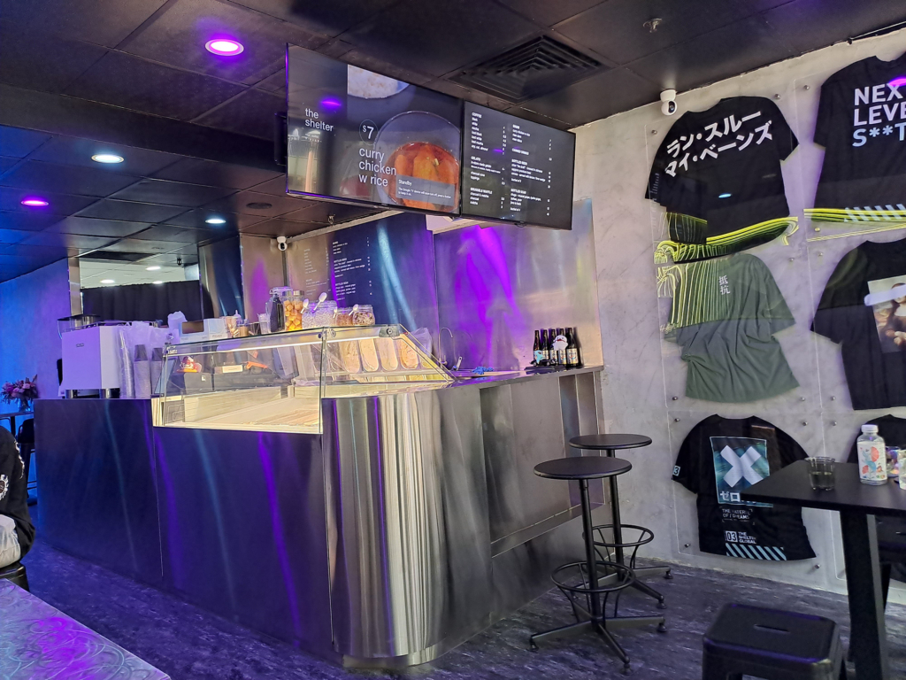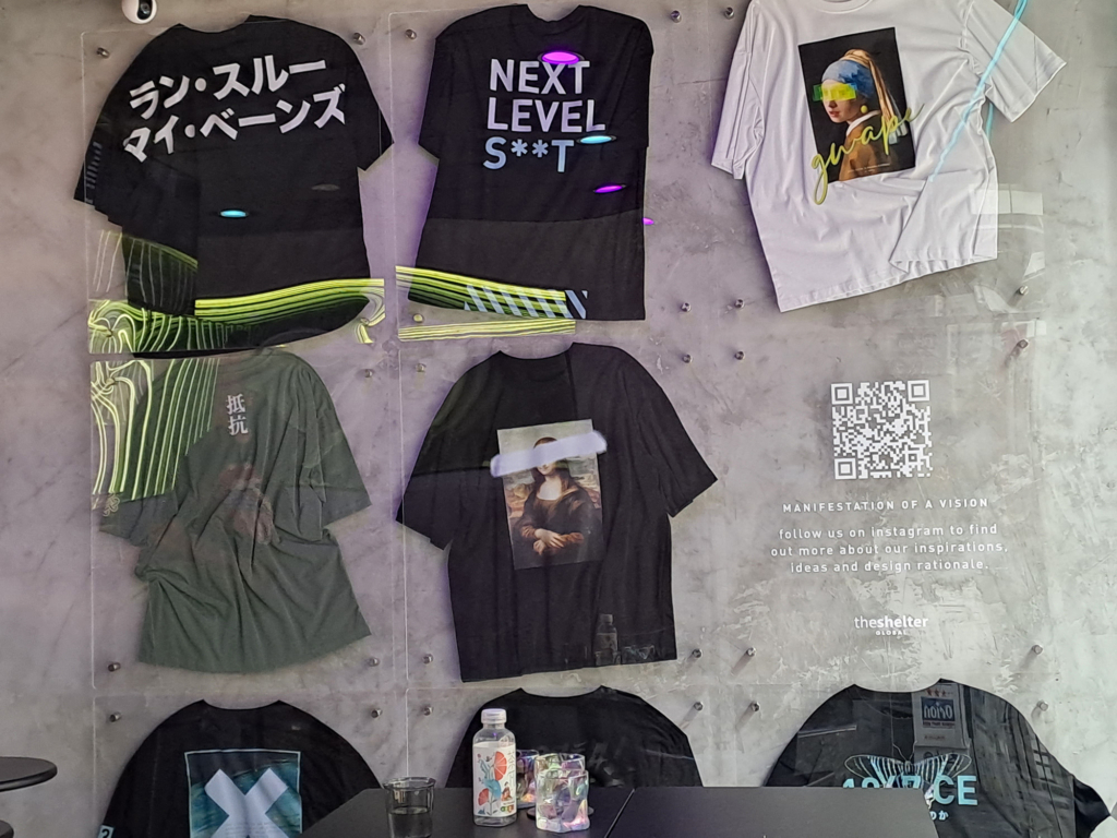 In terms of ambience, The Shelter exudes a dimly lit yet pleasant atmosphere, enveloped in neon blue and purple hues. Adjacent to the entrance, you’ll find an assortment of t-shirts by local designers on display, available for purchase if any catch your eye.