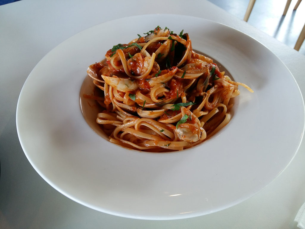 My dining companion ordered the Vongole Marinara, which I sampled. It was served so quickly that we had to wonder at first if it had been pre-made and microwaved. This turned out to be a pretty well done pasta dish, though. The linguine was al dente, the marinara sauce had just the right amount of spiciness without being overly tomatoey, and the clams were fresh. 4/5